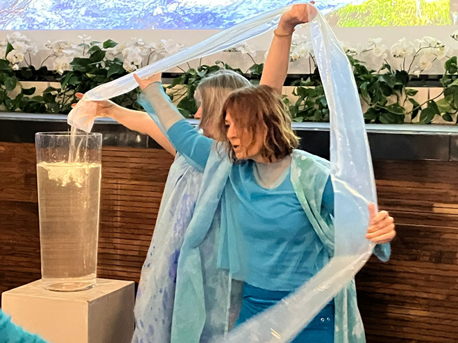 Am 21. März wurde das „Jahr des Wassers 2025“ im Grabfeld offiziell eröffnet. Bürgermeister Thomas Helbling und Regierungspräsidentin Dr. Susanne Weizendörfer begrüßten zur Auftaktveranstaltung in der Trinkkur- und Wandelhalle in Bad Königshofen die zahlreich erschienenen Gäste. Die Eröffnungsfeier spiegelte den Kern des Projekts, bei dem ein Jahr lang verschiedene Aktivitäten und Veranstaltungen rund um das Thema Wasser angeboten werden, sehr schön wider. So auch an diesem Abend, an dem ein vielfältiges Programm aus künstlerischen Darbietungen sowie die Projektvorstellung inklusive fachlicher Gespräche geboten wurde.